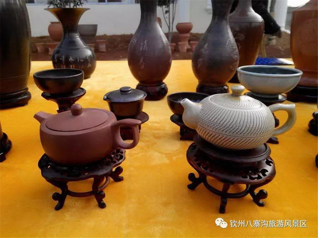 活動(dòng)內(nèi)容:1.欣賞欽州坭興陶大師現(xiàn)場拉胚、雕刻制作等工藝表演; 2.游客可現(xiàn)場學(xué)制作坭興陶,或選自己喜歡的圖案及內(nèi)容發(fā)給大師現(xiàn)場雕刻制作,燒制后郵寄購買。