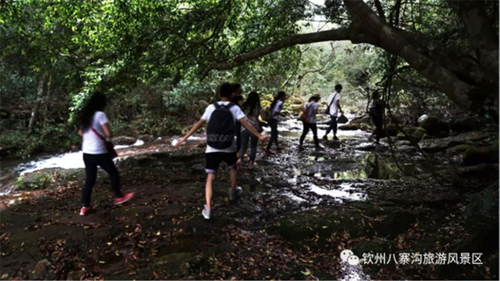 欽州的八寨溝與四川的九寨溝一樣,都具有豐饒的水源,異常清澈,天然原生態(tài),均為未遭到現(xiàn)代文明入侵和污染的圣潔凈土。也許是八寨溝的水都發(fā)自十萬大山的深處吧,匯聚著眾多的山泉沿著溝壑奔騰而下,一路隨心翻浪,一路高亢歡歌,從而在長年的沖擊中形成了大大小小的泉潭,并且順著山勢形成了不少或大或小的瀑布。