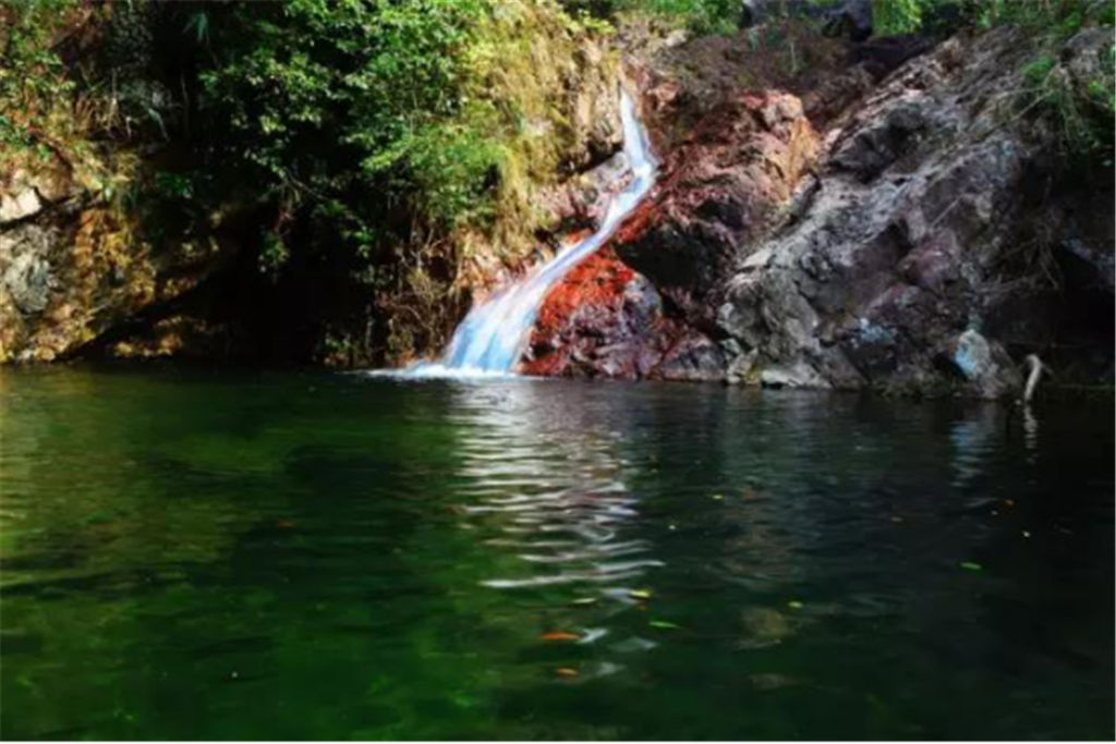 走進(jìn)山林200多米左右,我們便到達(dá)了牛郎織女橋。清澈的溪流,依稀可見魚兒在追逐嬉戲;徐徐山風(fēng)的吹過,更使人感到神清氣暢。要不是前面有更好的美景吸引著,我們真想就駐足在這里,投身于她的懷抱之中了。跨過牛郎織女橋,道路開始變得崎嶇,樹林也越來越茂密,雜花生樹,綠葉蔽日,使得原本并不見得寬的道路顯得更加狹小。 道路旁,一邊是林羅分布著的鐵柃格、湖榕木等數(shù)十種珍稀樹種,以及金銀花、黃杞子、枸骨藤等上百種珍稀藥材,另一邊則是清清的泉水時而從石板上匯成瀑布,時而從石隙間潺潺流過,景色十分誘人。