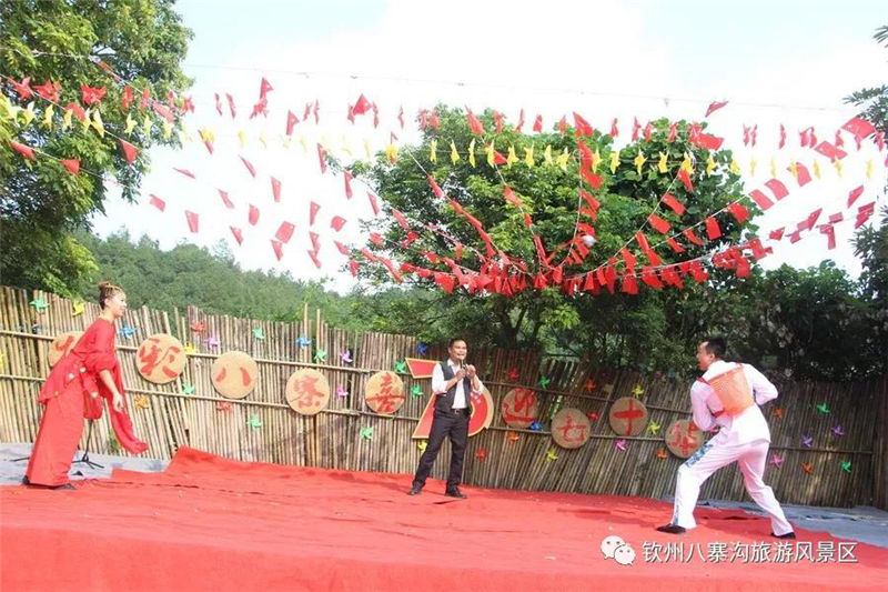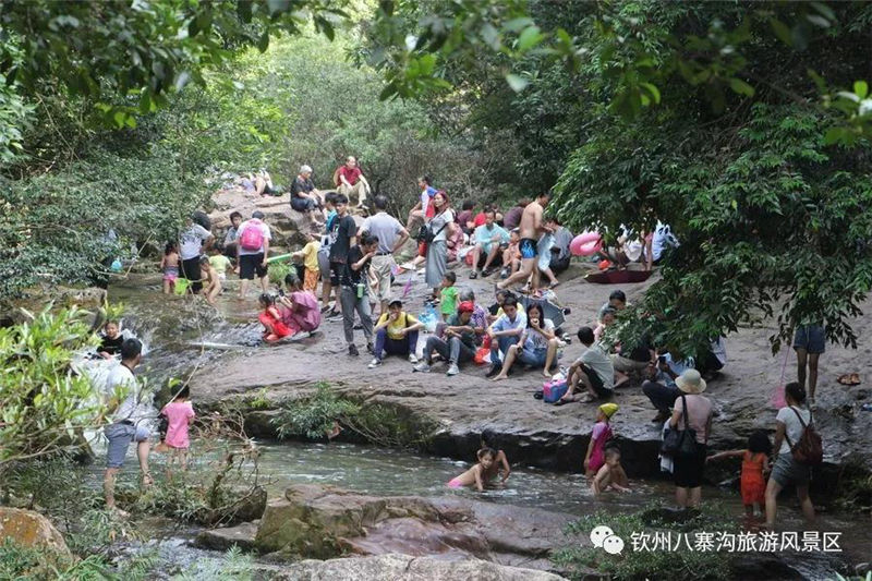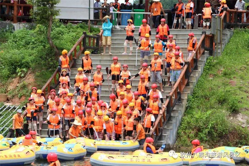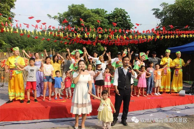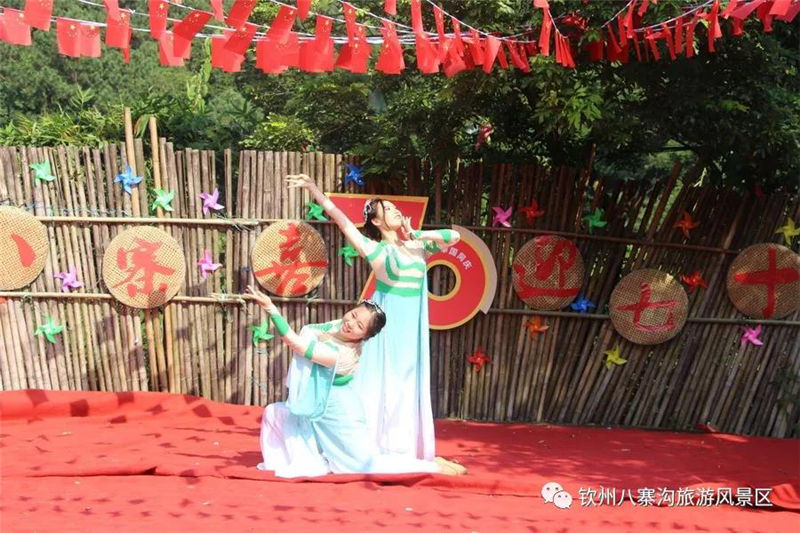 國(guó)慶期間景區(qū)舉辦以“炫彩八寨喜迎70華誕”為主題活動(dòng),受到眾多游客親睞。游客們白天可以觀看精彩歌舞文藝演出,賞彩虹風(fēng)車展,玩真人CS運(yùn)動(dòng),體驗(yàn)欽州第一漂的八寨溝森林漂流,登山泡山泉潑水狂歡,徒步暢游原始森林的美景,呼吸天然氧吧里的新鮮空氣,整個(gè)景區(qū)呈現(xiàn)一片游客如織、喜樂融融的景象。