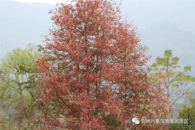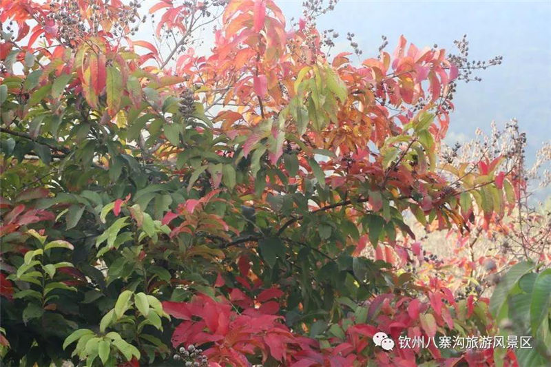 除了梅花,八寨溝梅園里的楓樹葉也開得正旺,非常漂亮,楓葉嬌紅似火,遠眺火紅的楓葉像一團團火在燃燒,那些從樹上飄落下來的葉子,像一只只紅色的蝴蝶在空中自由的飛舞。