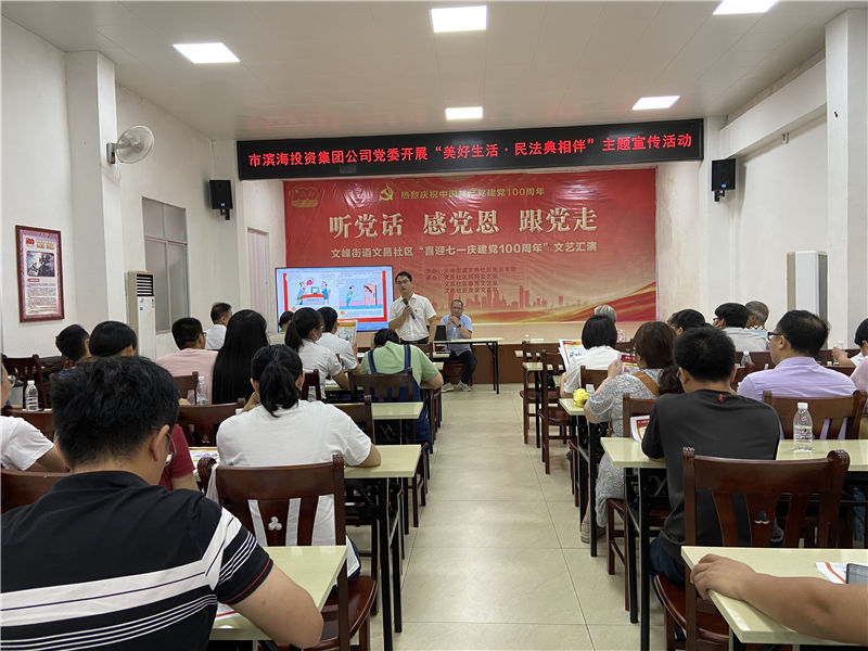 2021年6月28日,集團(tuán)公司黨委組織黨員干部到文昌社區(qū)開展“美好生活·民法典相伴”主題宣傳活動(dòng)。并在文昌社區(qū)新時(shí)代文明實(shí)踐大課堂舉辦了一場(chǎng)《中華人民共和國民法典》宣傳宣講。