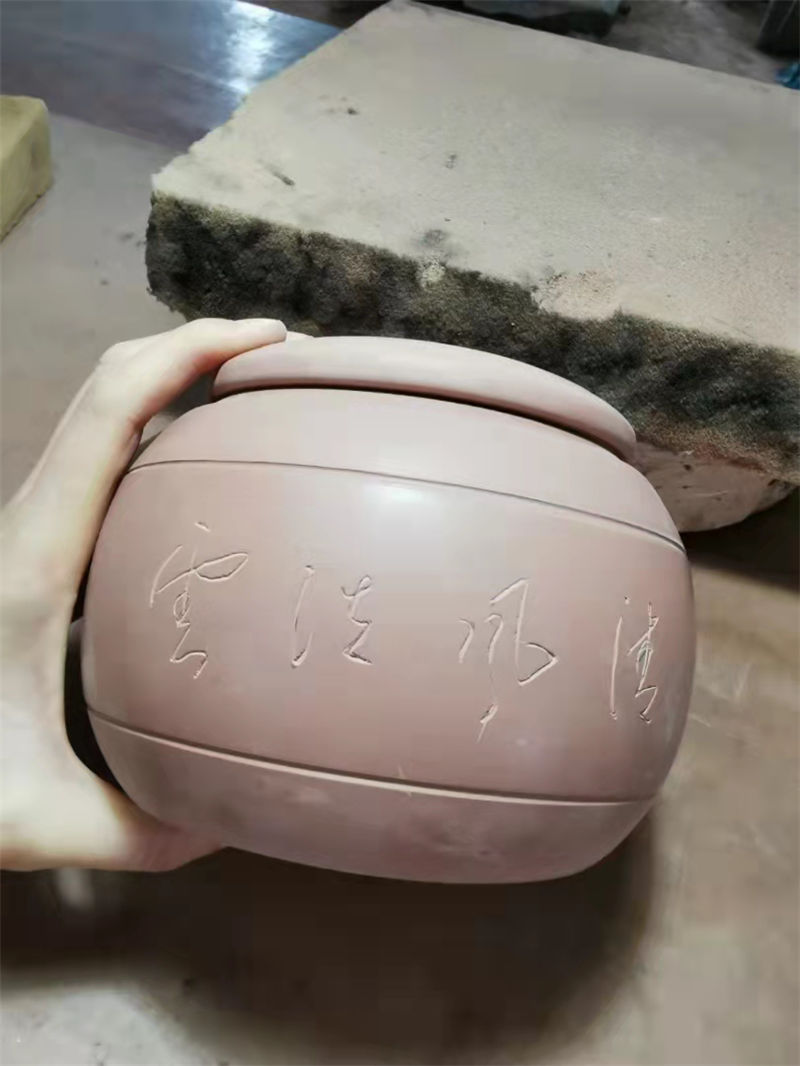 坭興陶文化體驗活動分為文化知識講解和制作體驗兩部分。文化館負責人詳細講解欽州市泥興陶歷史文化、成就,并帶領女職工們參觀陶器燒制現(xiàn)場和泥興陶成品,介紹泥興陶制作過程以及煙塵處理等知識。在陶藝制作體驗環(huán)節(jié),女職工們認真觀摩陶藝老師的操作演示拉胚和雕刻,并有模有樣的制作,雖然制作出來的作品相對粗糙,但大家如獲至寶。