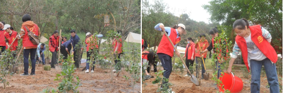 女職工們拿起鋤頭和鐵鍬,提起水桶,彎下腰,在八寨溝旅游景區(qū)種下一棵棵桂花樹、山茶花,在春日里用自己的雙手為八寨溝景區(qū)增添了一抹綠彩。