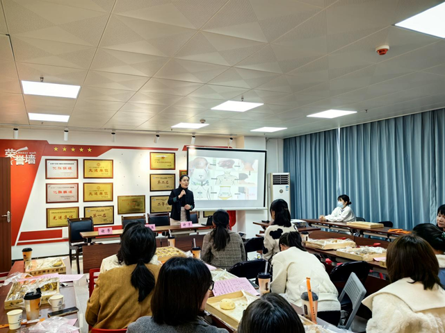 授課過程中,講師還為女職工設(shè)置了中醫(yī)文化體驗(yàn)環(huán)節(jié)。專業(yè)的中醫(yī)養(yǎng)生教練身著傳統(tǒng)服飾,身姿矯健地站在前方,為女職工們示范八段錦的標(biāo)準(zhǔn)動(dòng)作。“雙手托天理三焦,左右開弓似射雕……” 教練一邊口中念念有詞,一邊緩緩展示著一招一式,動(dòng)作行云流水、剛?cè)嵯酀?jì)。練習(xí)過程中,女職工們屏氣斂息,專注于每一個(gè)動(dòng)作的細(xì)節(jié),感受著身體的拉伸與舒展,仿佛在一招一式間與古老的中醫(yī)養(yǎng)生智慧對(duì)話。八段錦不僅讓女職工們體驗(yàn)到傳統(tǒng)健身方式的魅力,更在動(dòng)靜結(jié)合中舒緩了身心壓力,調(diào)節(jié)了氣息。許多女職工表示,練習(xí)完八段錦后,身體微微發(fā)熱,整個(gè)人都神清氣爽,仿佛充滿了能量。