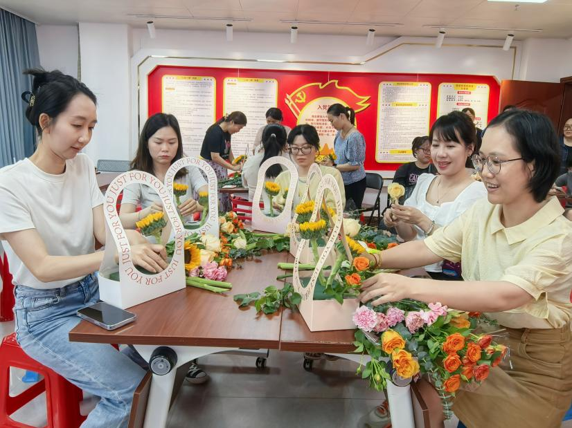 【創(chuàng)意插花】以花傳情,感恩母愛。現場邀請花藝師為職工講解插花的基本技巧和花卉寓意,職工通過精心修剪花枝、巧妙搭配色彩,用心制作專屬于自己的花禮。“每一朵花都寄托著對母親的感恩”“媽媽最喜歡粉色,所以我特地多選了些粉色的康乃馨,我要把這份禮物帶回家,親手送給她”......參加活動的職工紛紛表達自己的寄語。