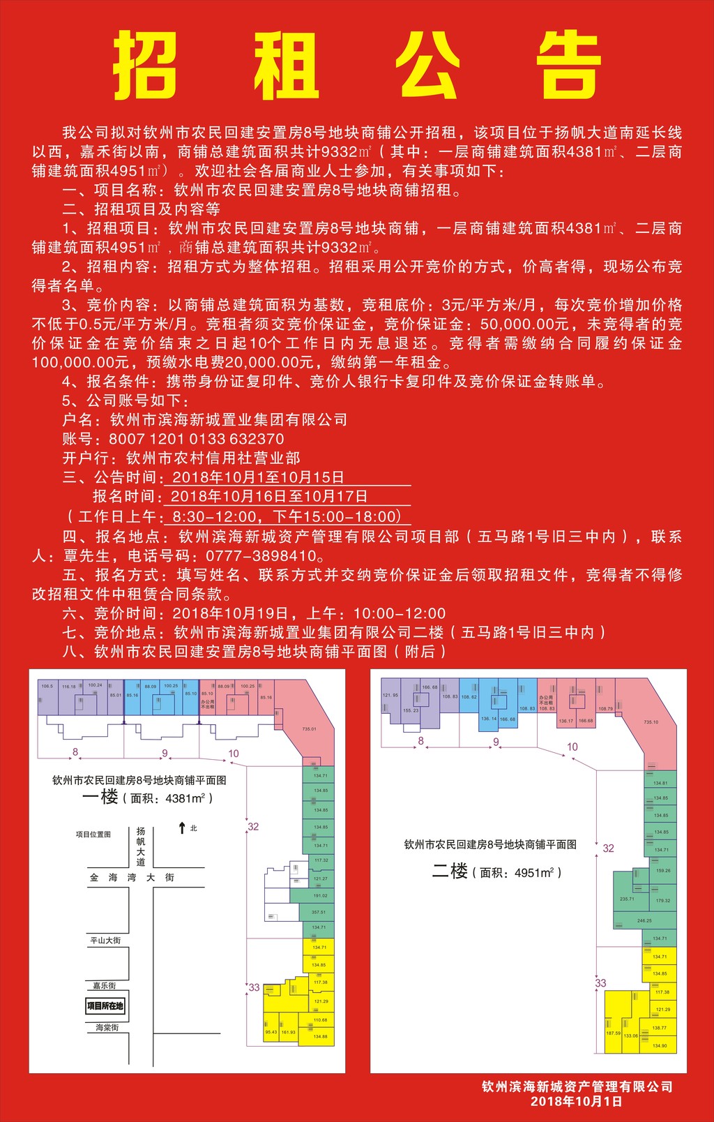 欽州市農(nóng)民回建安置房8號地塊商鋪招租公告
