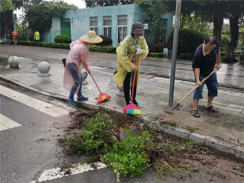 活動當天,煙雨朦朧。志愿者們有的拿著鏟子,有的拿著掃把,有的拿著垃圾簍,冒雨干起活來。