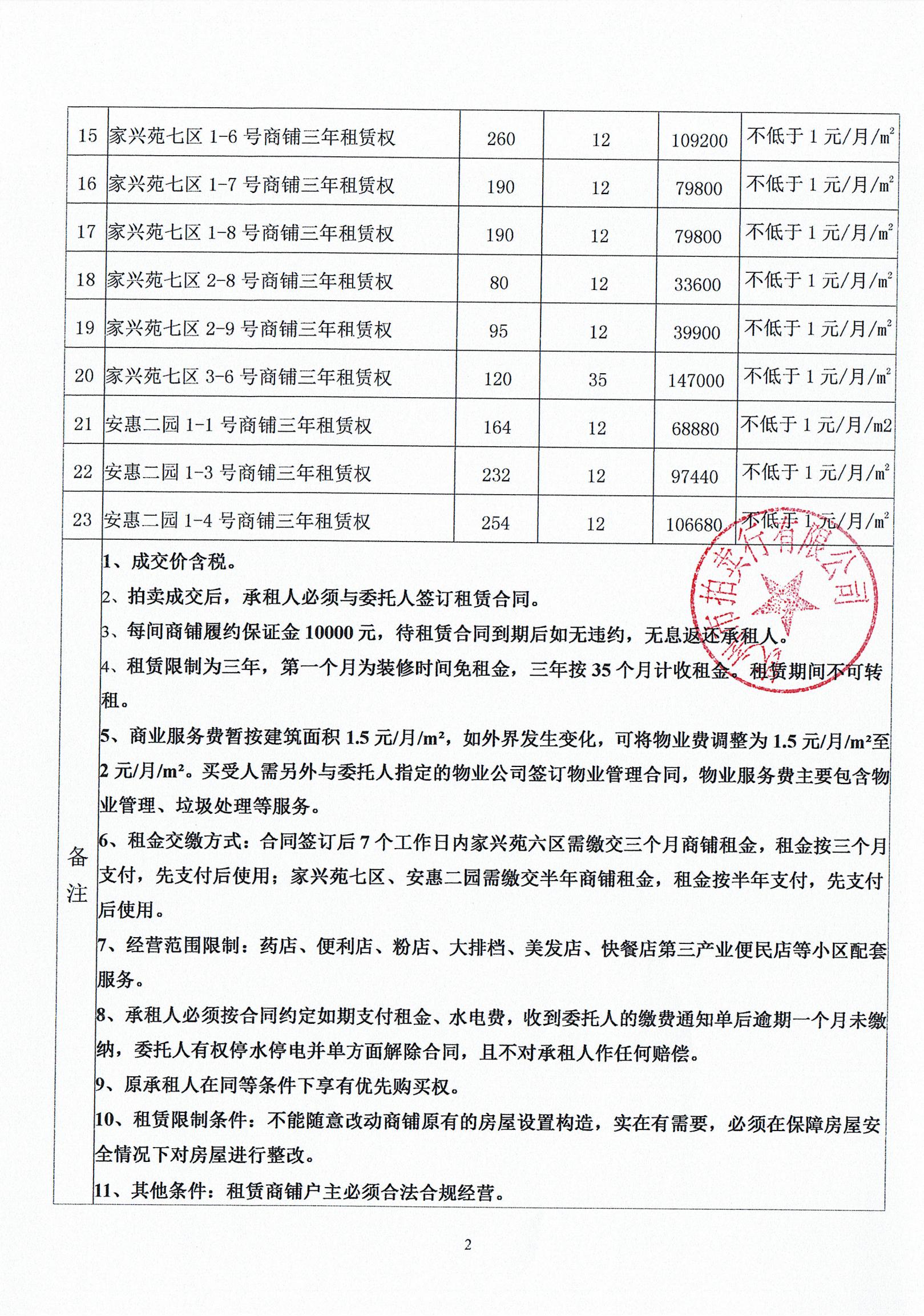 (家興苑六區(qū)、七區(qū)、安惠二園)商鋪?zhàn)赓U權(quán)拍賣公告