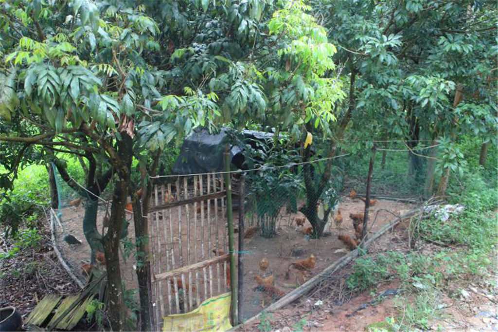 (圖為趙文博董事長查看脫貧戶陳基東家禽飼養(yǎng)情況)