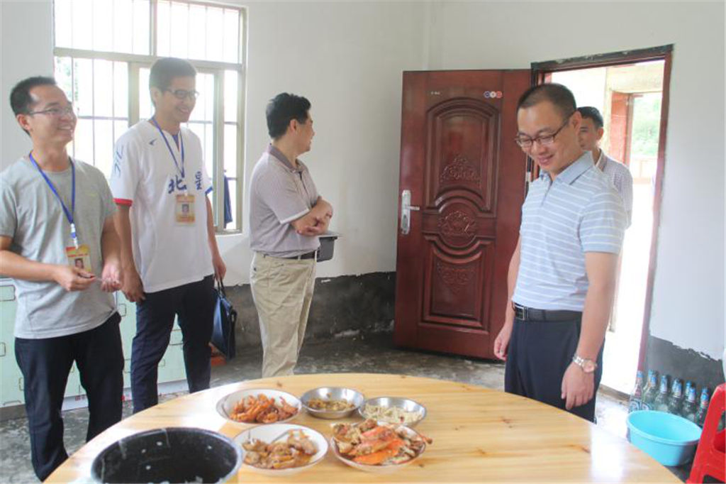 最后,趙文博董事長來到新禾村公共服務中心看望駐村隊員。由于先前駐村隊員駐村條件艱苦,沒有固定的廚房,每天都要面對“吃飯難”的問題。今年5月份市委組織部下發(fā)《關于做好扶貧攻堅(鄉(xiāng)村振興)工作隊員駐村安排工作的通知》,要求駐村隊員吃住在村、全脫產(chǎn)工作在村作為一條鐵的紀律。為此,新禾村的三個幫扶單位積極研究對策并推動落實,集團公司大力予以資金支持用于新禾村公共服務中心廚房的建設。歷經(jīng)一個多月的建設,村委廚房已建成并投入使用。趙文博董事長在第一書記的引導下來到廚房參觀,看到廚具、餐具、餐桌、凳子一應俱全,駐村隊員們終于解決了吃飯難問題時,趙董事長松了一口氣,他表示廚房的建成,不僅解決了駐村隊員做飯難、吃飯難的問題,同時也為駐村隊員解決了后顧之憂,讓工作隊員能安心駐村,爭取提前完成脫貧攻堅任務打下堅實的物質(zhì)基礎。