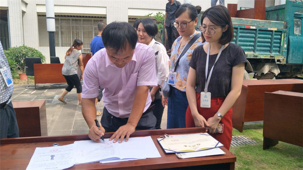 7月18日上午9:30,我集團(tuán)公司向欽州市初心公益協(xié)會贈與一批辦公桌椅,用于解決分界村民服務(wù)中心樓新時代講習(xí)所桌椅短缺問題。 (圖為:我集團(tuán)公司代表簽字) (圖為:對方代表簽字) (圖為:搬運辦公桌椅)