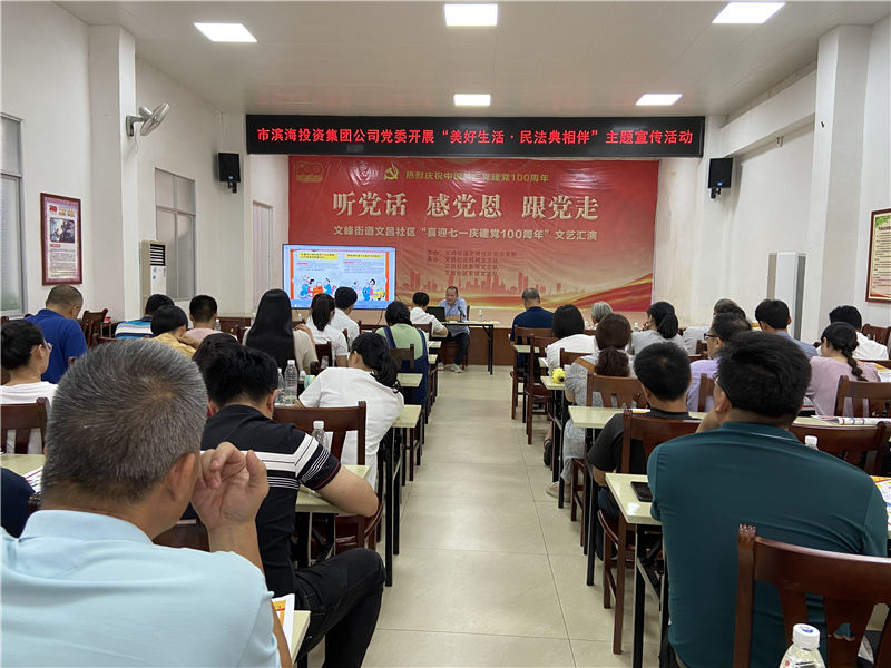 2021年6月28日,集團(tuán)公司黨委組織黨員干部到文昌社區(qū)開展“美好生活·民法典相伴”主題宣傳活動(dòng)。并在文昌社區(qū)新時(shí)代文明實(shí)踐大課堂舉辦了一場《中華人民共和國民法典》宣傳宣講。