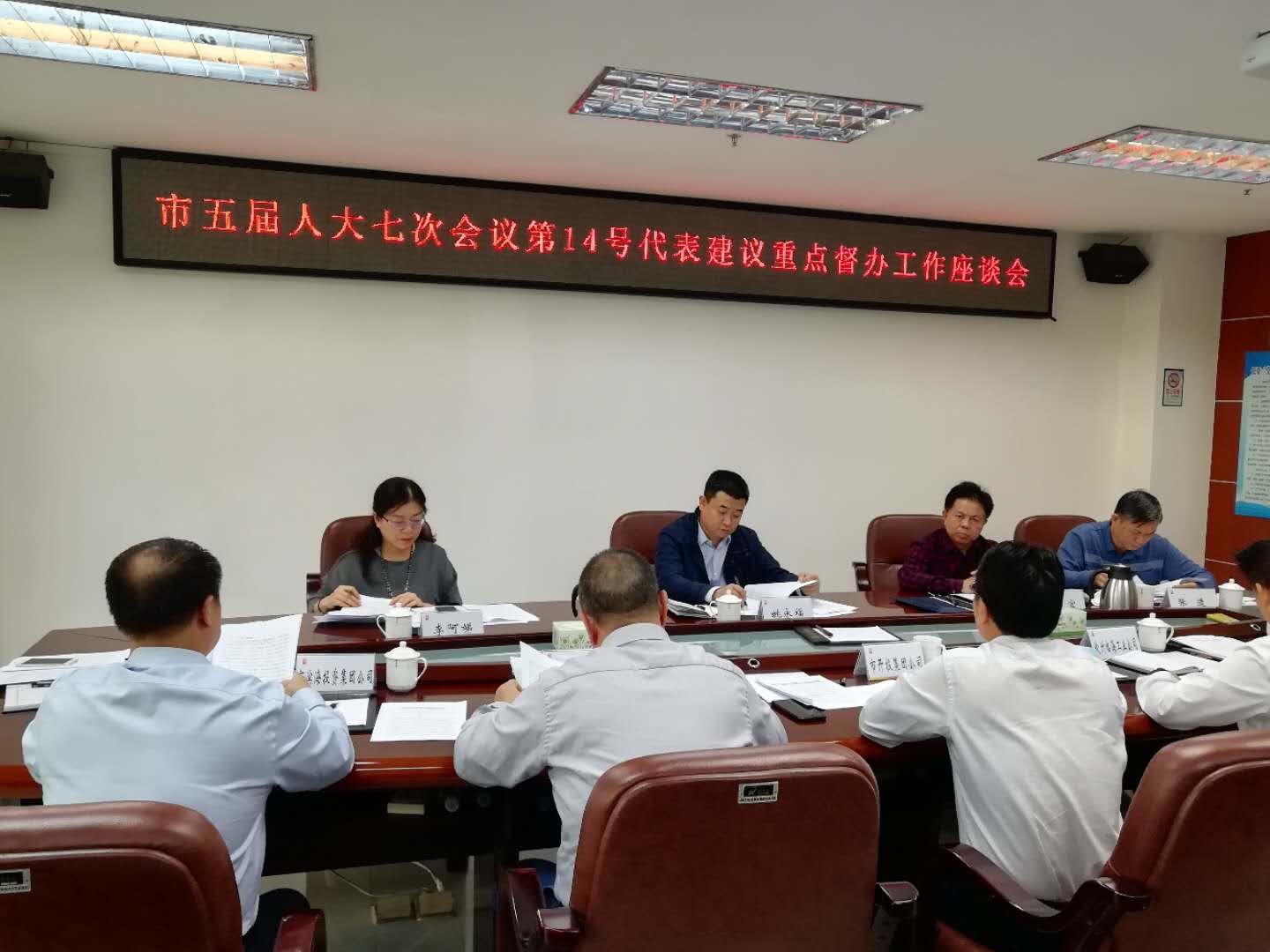 10月22日下午,市委常委、副市長(zhǎng)姚永福帶隊(duì)到我集團(tuán)公司督辦市五屆人大七次會(huì)議《關(guān)于加快平臺(tái)公司市場(chǎng)化改革的建議》(第14號(hào))落實(shí)情況。 市人大常委會(huì)副秘書長(zhǎng)儲(chǔ)之宜、市人大財(cái)經(jīng)委副主任委員張?jiān)?、人大代表李阿娣、市?guó)資委副主任謝青等領(lǐng)導(dǎo)陪同。我集團(tuán)公司黨委委員、副總經(jīng)理?xiàng)钚聴澟阃R報(bào)提案落實(shí)情況。