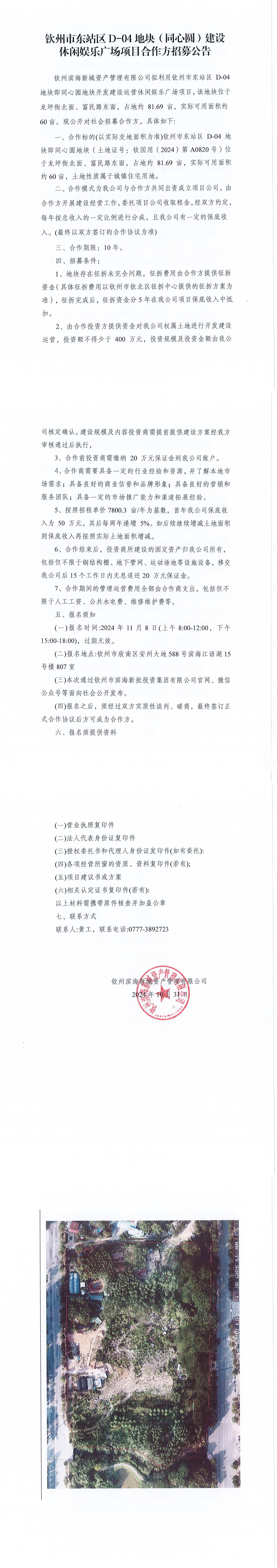 欽州市東站區(qū)D-04地塊(同心圓)建設(shè)休閑娛樂(lè)廣場(chǎng)項(xiàng)目合作方招募公告