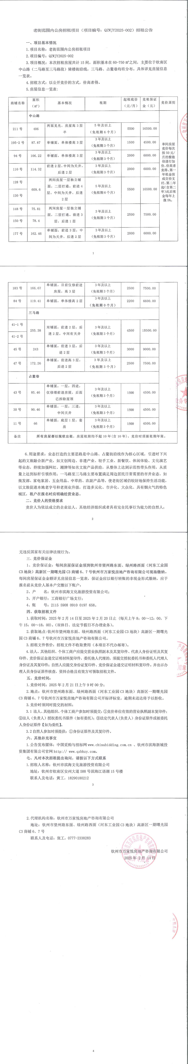 欽州市老街范圍一馬路5、6號(hào)房屋公開(kāi)招租