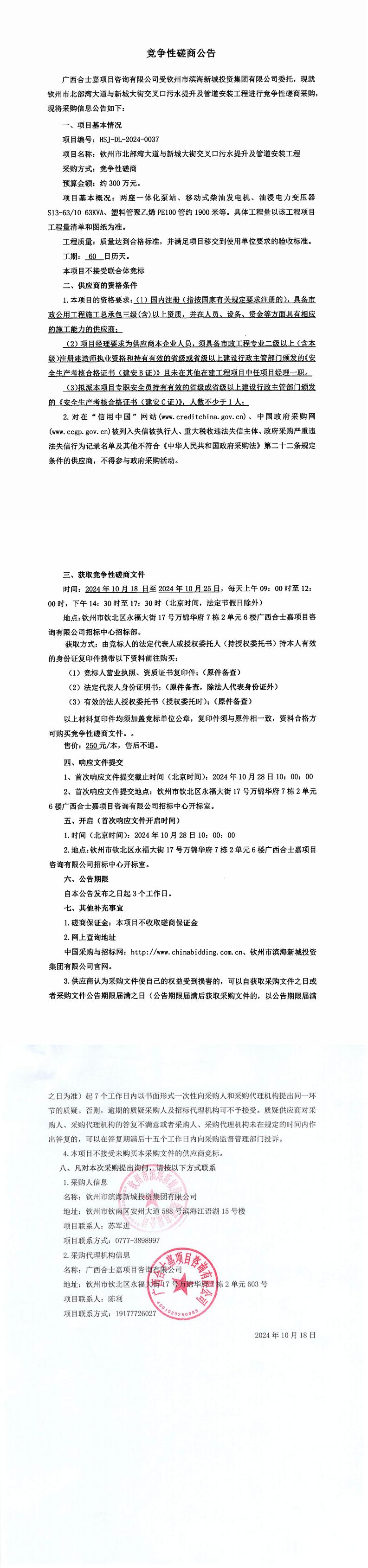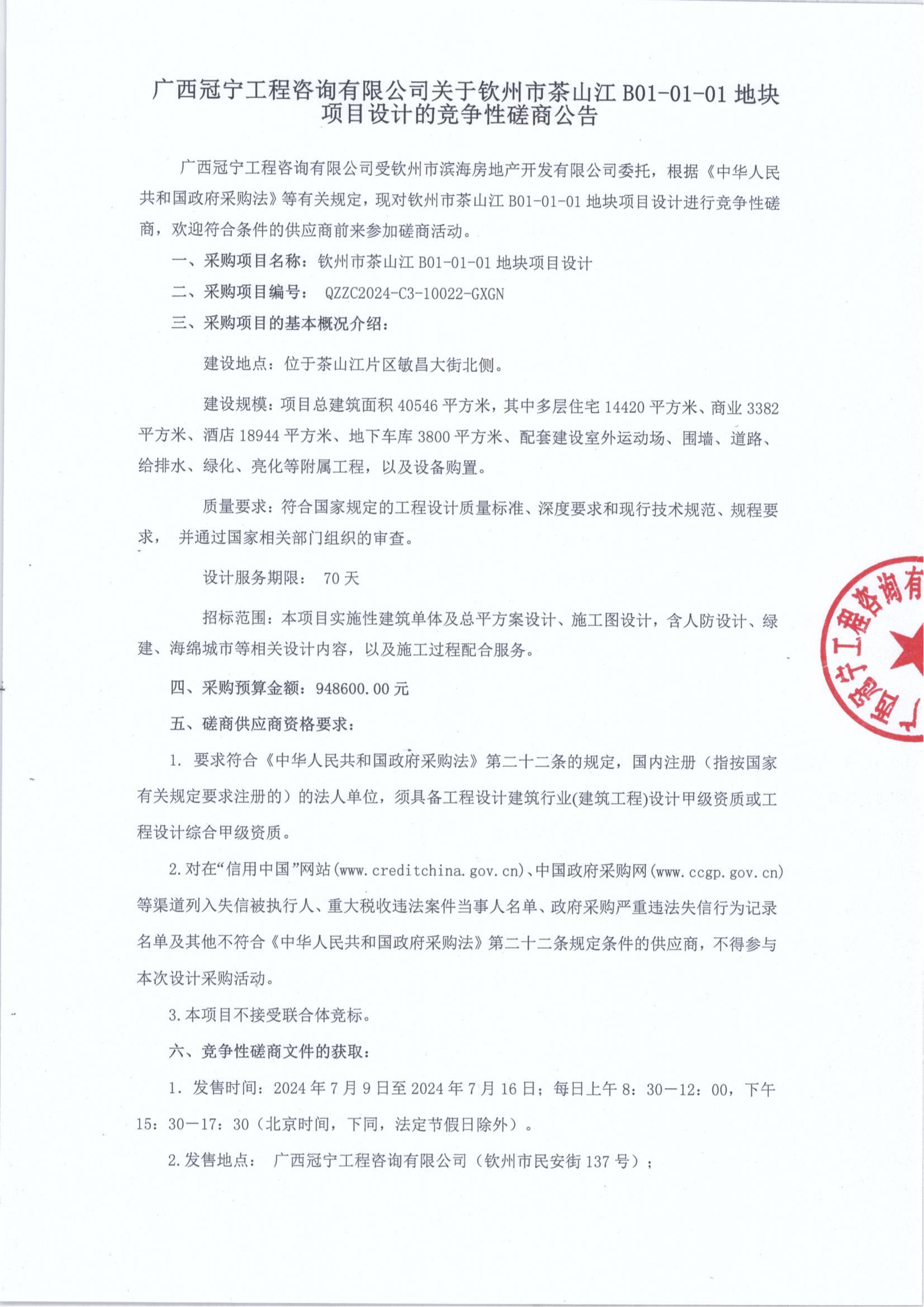 1.招標條件 本招標項目欽州北部灣大學大門商業(yè)街地塊項目設計已由廣西投資項目在線審批監(jiān)管平臺以備案形式批準建設,招標人為欽州市濱海房地產(chǎn)開發(fā)有限公司,建設資金來自國有資金,項目出資比例為: ...