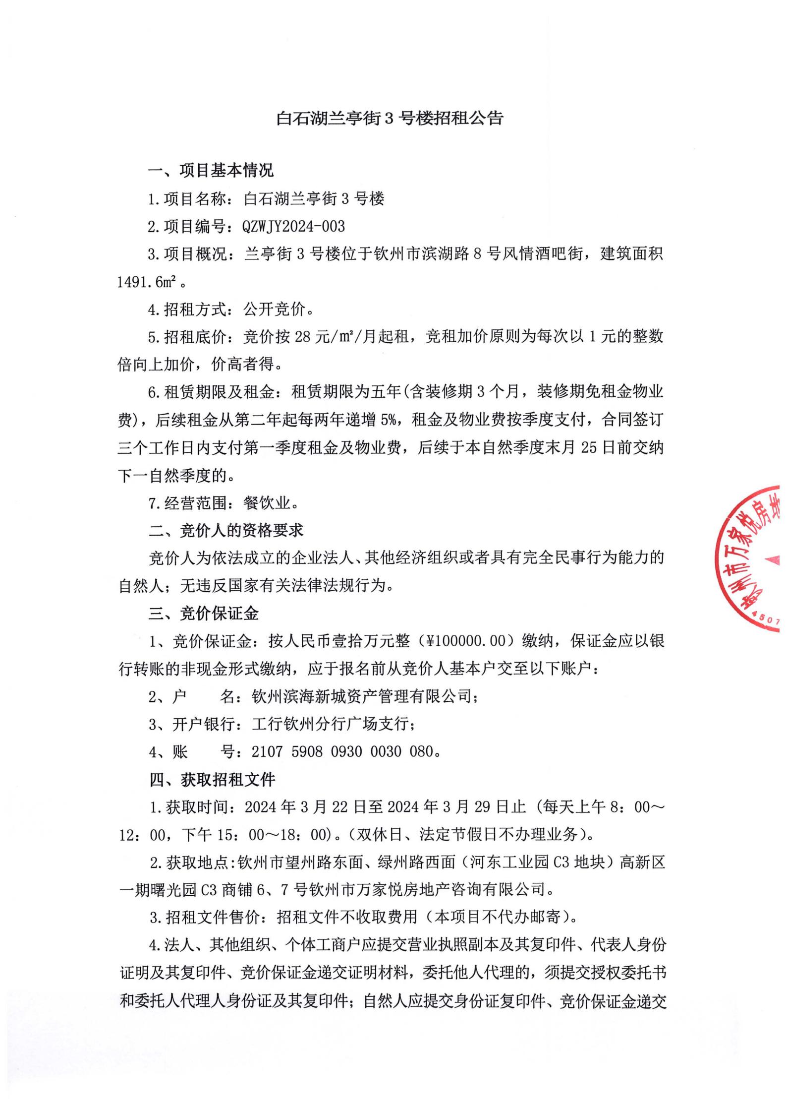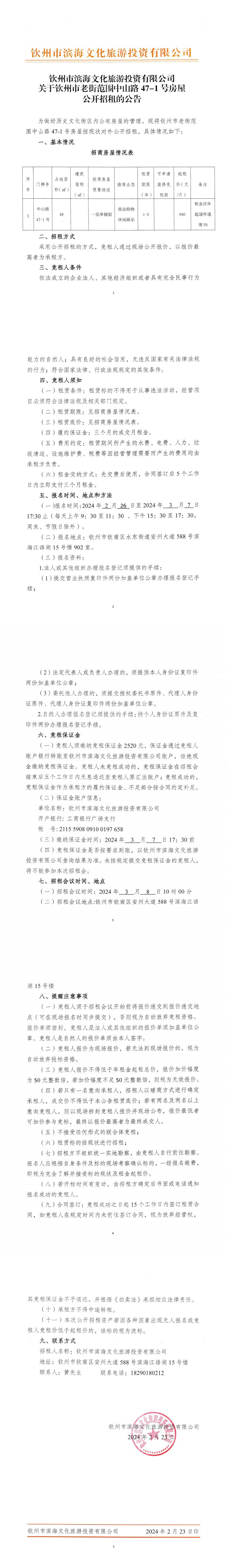 關(guān)于欽州市老街范圍中山路47-1號房屋公開招租的公告