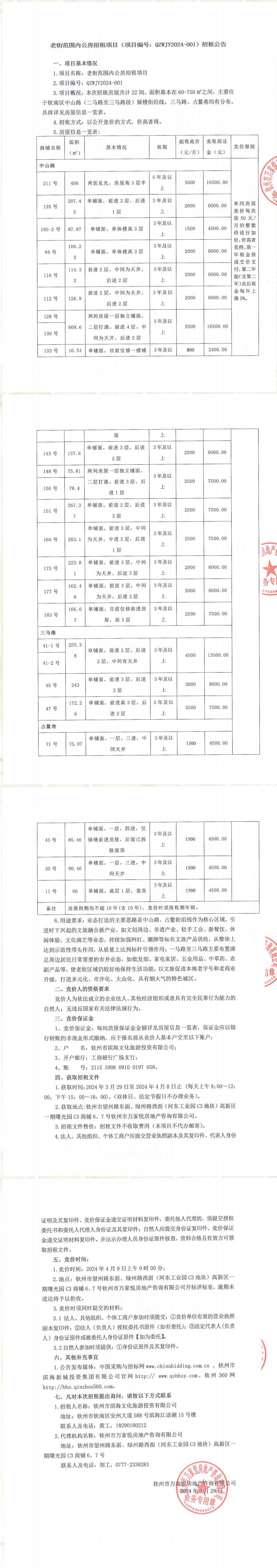 老街范圍內(nèi)公房招租項目(項目編號:QZWJY2024-001)招租公告