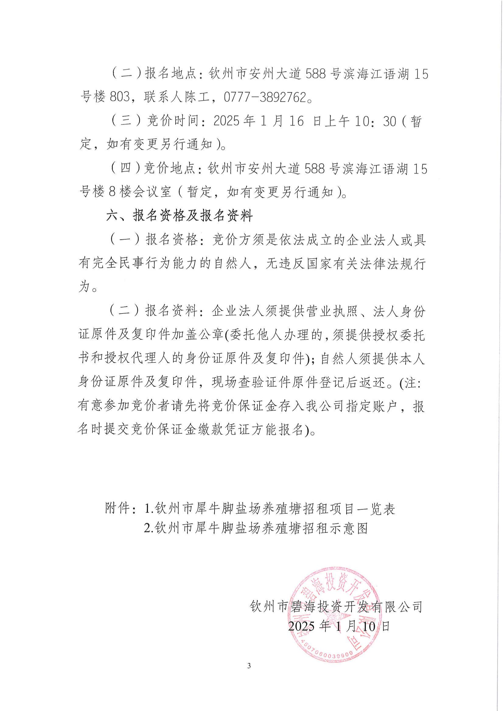 關(guān)于犀牛腳鹽場(chǎng)養(yǎng)殖塘公開招租的公告