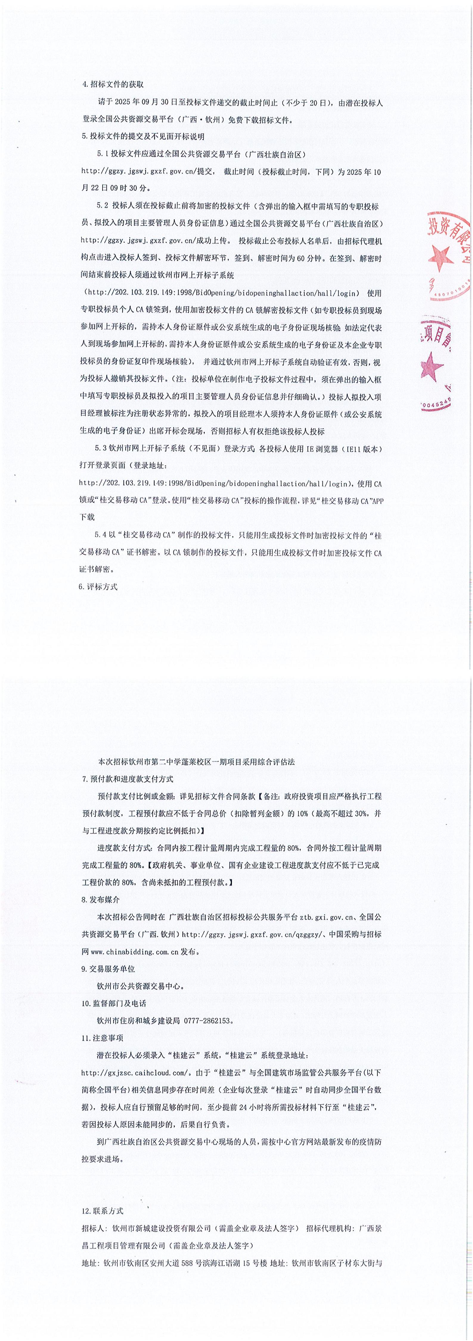 欽州市第二中學(xué)蓬萊校區(qū)一期項(xiàng)目(項(xiàng)目招標(biāo)編號(hào):E4507002846007265001)更正公告(一)